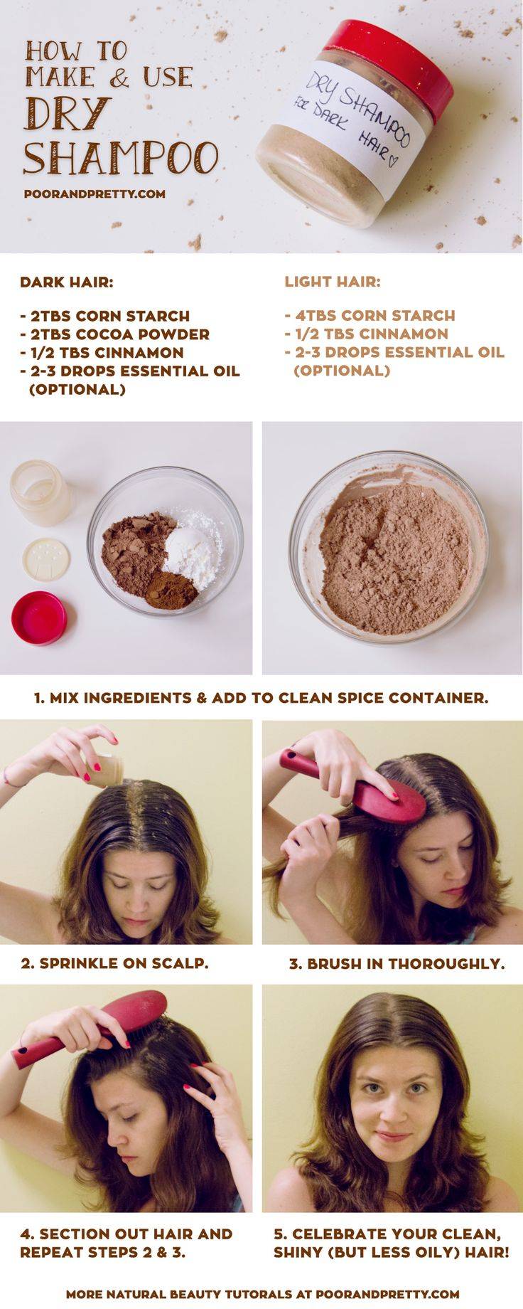 Чтобы приготовить сухой шампунь в домашних условиях, нужно немного времени и небольшой набор ингредиентов.