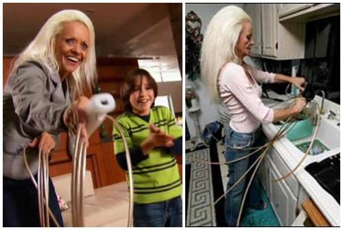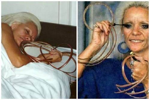 4. Несмотря на свисающие волнами “гирлянды”, Крис уверяет, что сама себя полностью обслуживает: одевается, делает сложный макияж, готовит еду и посылает текстовые сообщения по телефону внукам (а их у Кристы трое).