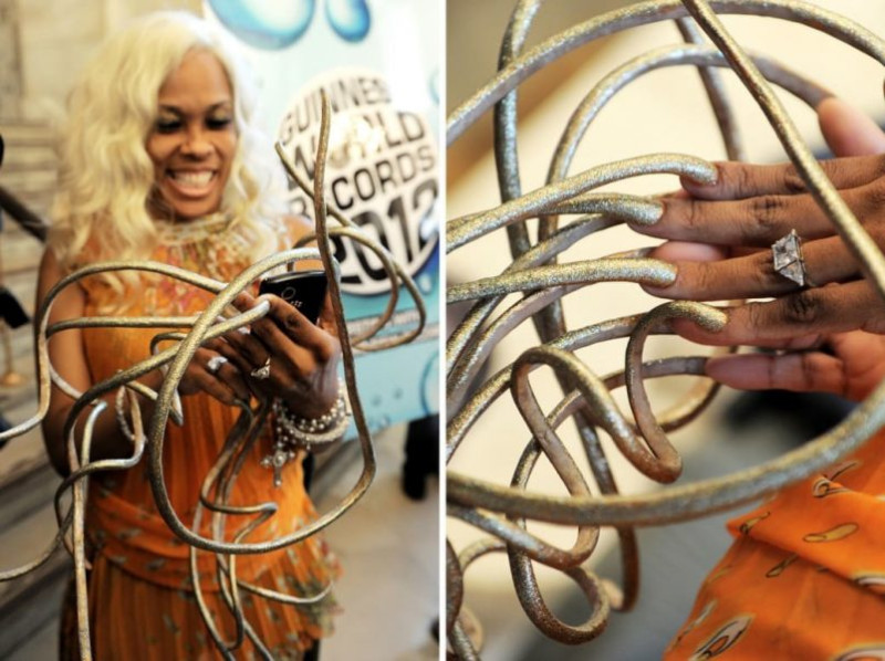 10. Предыдущий рекорд самых длинных ногтей поставила Ли Редмонд из Солт-Лейк-Сити. В 2008 году ее ногти достигли длины около 8 метров, но она рассталась с ними после автомобильной аварии. Ее “достояние” ей предлагали продать за 10 000 долларов.