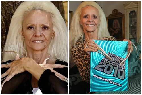 Эта женщина долгое время носила «самые знаменитые ногти мира», прекратив их стричь, начиная с 1979 года. На момент фиксации рекорда в книге Гиннесса в 2003 году общая длина ее ногтей составляла 753 см, что на целый метр больше нынешней обладательницы титула.