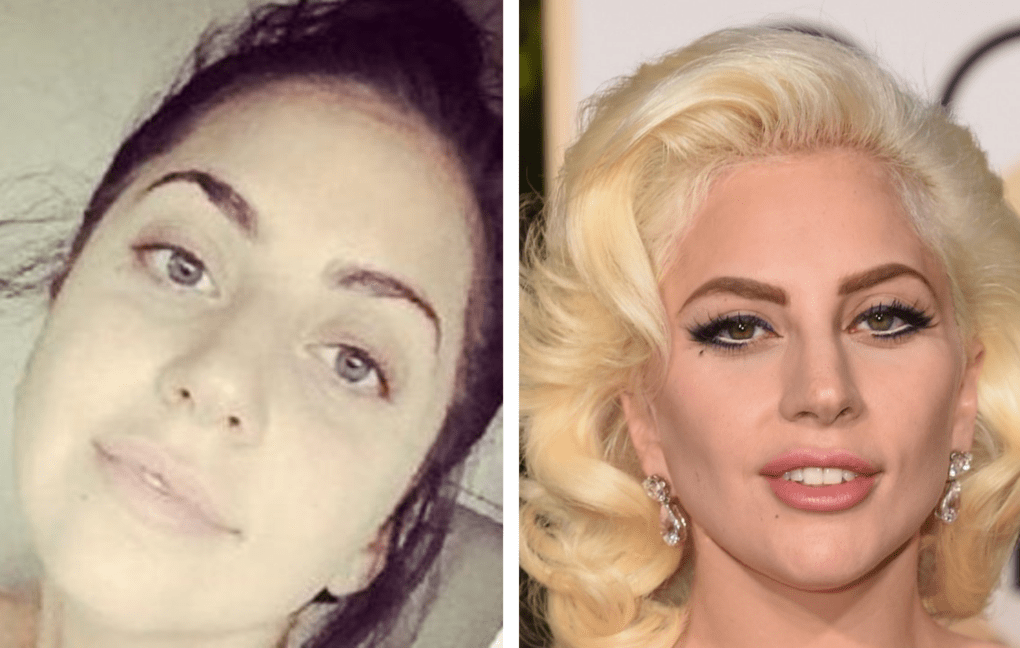 Леди Гага. Макияж является не только изюминкой Стефани Германотта, которая всем знакома как Леди Гага, но еще и инструментом для того, чтобы скрыть весьма непривлекательную внешность. В отличие от других знаменитостей она абсолютно не боится выкладывать свои фото без грима и фотошопа в социальные сети, тем самым показывая свое “настоящее я”.