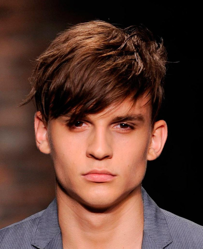 - В текущем году мужские стрижки с челкой стали менее формальными, поэтому можно добавить филировку или легкую асимметричность. Дополнительный бонус – так ты сможешь визуально увеличить объем волос.