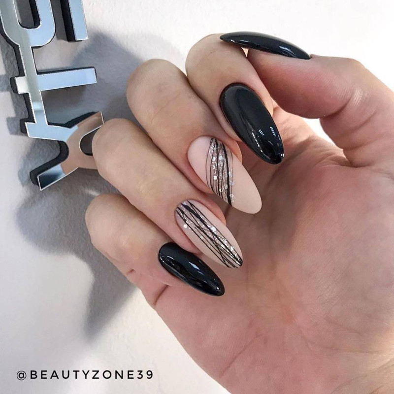 Маникюр минимализм на пике популярности. Девушкам очень нравятся незамысловатые, но при этом эффектные узоры на ноготках. Маникюр чаще всего выполняется в ахроматических оттенках: черный-белый, прозрачный-черный, бежевый-черный и т.д. На светлом фоне черные узоры выглядят гораздо заметнее и эффектнее.