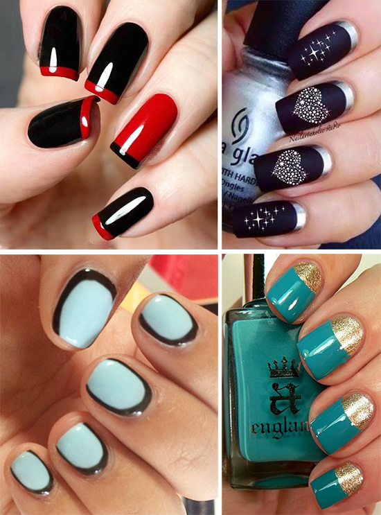 Иногда, чтобы подчеркнуть длину, прозрачную часть по краю оформляют цветным, чаще всего тёмным, гель-лаком или краской.