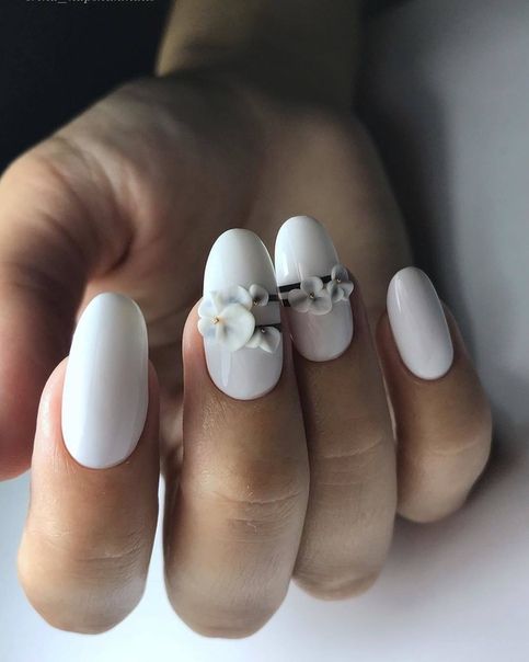 - Наибольшей популярностью будет пользоваться белый мрамор. При этом один ноготок может выделяться контрастном — однотонной расцветкой или мраморным исполнением контрастного цвета.
