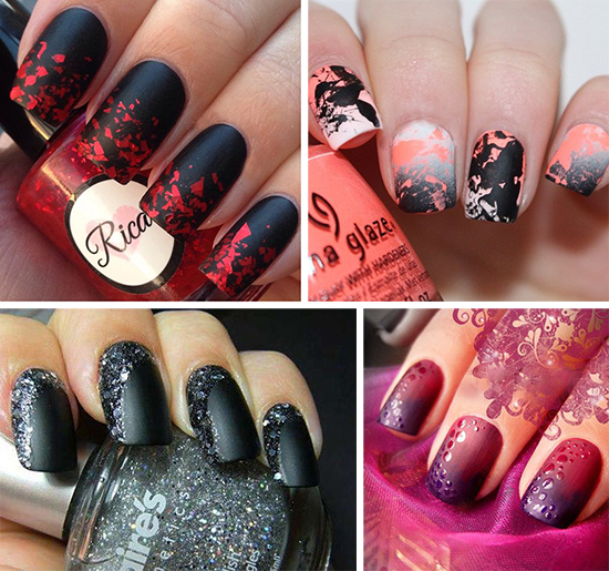 Фон или рисунок в черном цвете придаст образу экстравагантности, поможет сделать руки центром внимания. На нем хорошо смотрится золото, блестки. А также алый красный лак, как символ женственности подходит ярким личностям, станет отличной основой и добавочным цветом в сочетании с золотым, слюдой, бусинами, мраморным дизайном.