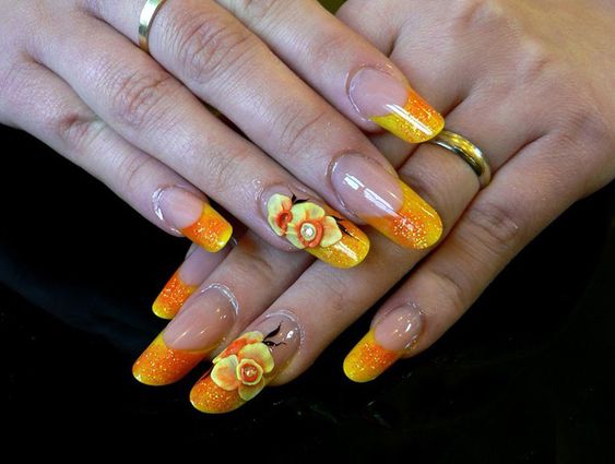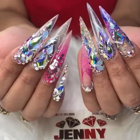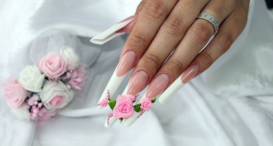 Акриловую лепку можно сделать на длинных прозрачных ногтях, используя всю длину или только некоторые часть ногти.