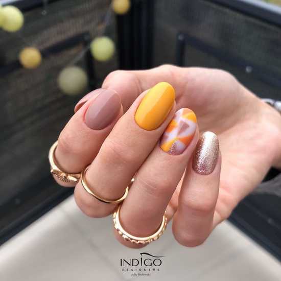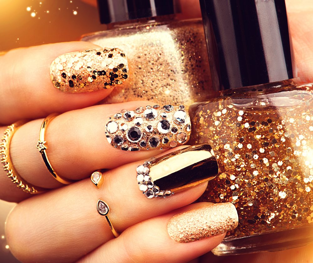 Позволим себе лишь пару замечаний на сей счет. К украшениям из золота подбирайте покрытия и декоративные элементы соответствующего цвета. Золотистый шиммер, блестки и бусинки в декоративном дизайне ногтей в этом смысле будут выглядеть наиболее органично.