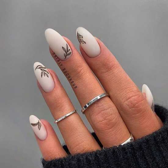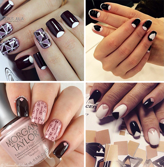 Маникюр минимализм на пике популярности. Девушкам очень нравятся незамысловатые, но при этом эффектные узоры на ноготках. Маникюр чаще всего выполняется в ахроматических оттенках: черный-белый, прозрачный-черный, бежевый-черный и т.д. На светлом фоне черные узоры выглядят гораздо заметнее и эффектнее.