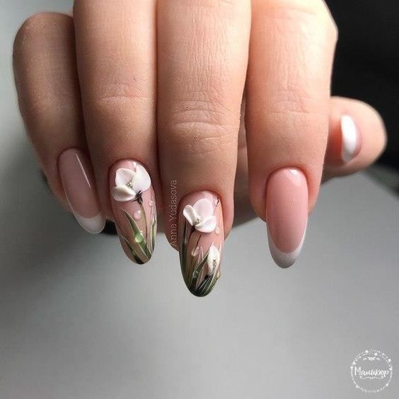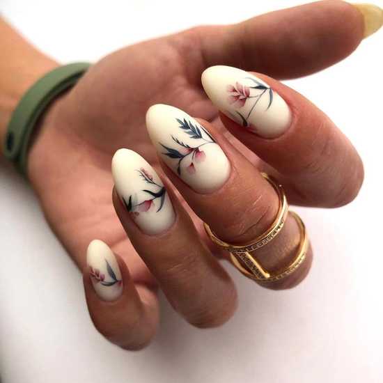 Что касается тематики узоров, то в лидерах по-прежнему флористика. Ее легче выполнить ручной росписью или стемпингом, цветы выглядят нейтрально, что очень необходимо для повседневного маникюра. Кроме флористики на ноготках девушек красуются полосы, круги, ловцы снов, точки, мэхенди и т.д.