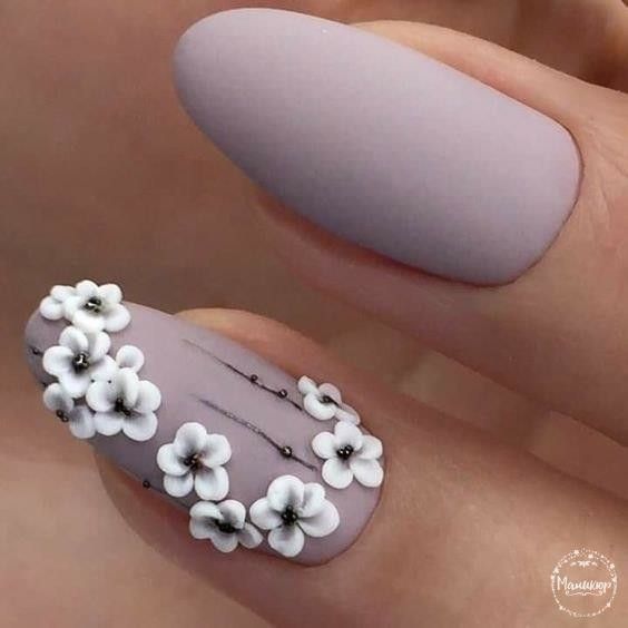 С помощью специального пластилина или покрытия на поверхности ногтя создается объемная фигура — это могут быть лепестки цветов, листья и даже лица некоторых известных людей. Лепку можно легко повредить, поэтому рекомендуется использовать такой маникюр для торжественных мероприятий (не для дома).