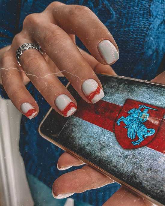 Синий, белый и красный цвета – беспроигрышное сочетание для оригинального, необычного маникюра. Дизайн американского флага популярен не только в стране свободы и демократии, но и по всему земному шару. Не отстают от модных тенденций и жительницы России.