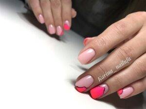 Броская абстракция завоевала списки модных трендов не только в фэшн-индустрии, но и в мире маникюра. Не бойтесь сочетать красочные оттенки и яркий декор. Тандем белого горошка, космических разводов и разнообразных линий — все это смотрится круто и новомодно. С таким дизайном вы будете выглядеть суперстильно и молодежно.