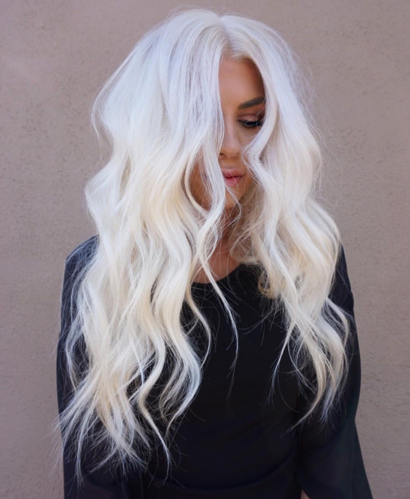 Платиновый блонд с холодным подтоном. Главное украшение таких волос – это перламутровые переливы, которые создают невероятно стильный и обворожительный образ.