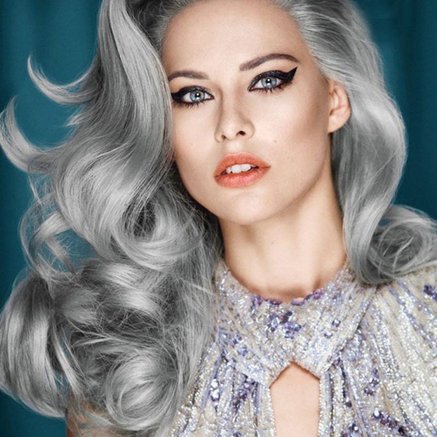 - Серебристая седина. Она еще в тренде, хотя ее популярность и сдает понемногу свои позиции. С помощью этого цвета дамы в возрасте и молодые девушки могут создавать эпатажные образы. В моде и натуральная седина, поэтому не стоит закрашивать волосы, ставшие модными под влиянием времени! Для тех, кто решил прибегнуть к окрашиванию в седой цвет, есть предостережение: его не стоит делать дамам с темными волосами, ведь краситель требует сильного осветления, что может отрицательно отразиться на волосах.
