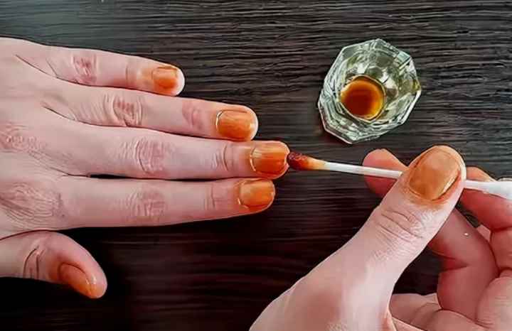 Для этого нужно ватной палочкой нанести Йод на ногти, аккуратно. Не стоит бояться цвета, через несколько часов он полностью впитается. При этом обязательно нужно нанести на и руки и ногти питательный крем, из-за того, что Йод на спиртовой основе.