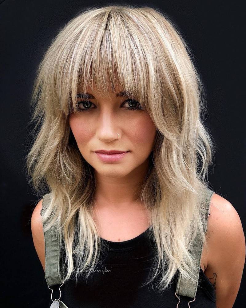 Свежий, длинный, многослойный шэгги может придать вам абсолютно невероятный внешний вид. Длинная лохматая челка сочетается с большими волнами для создания прически, которая выглядит непринужденно.