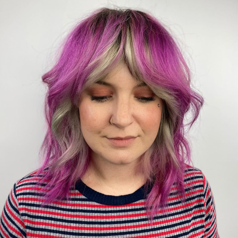Когда вы экспериментируете с действительно богатой цветовой обработкой, которая выходит за пределы естественных оттенков, может быть сложно справиться с тем, как этот цвет тускнеет или меняется с износом. Слои шэгги демонстрируют оттенки любого цвета, но они особенно подходят для того, чтобы позволить свету хорошо сочетаться с секциями на разных стадиях роста.