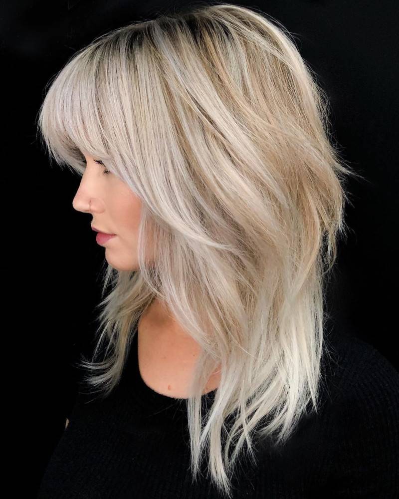 Подходящая как для коротких, так и для более длинных волос, стрижка шегги – один из вариантов прически, который очень хорошо сочетается с челкой.