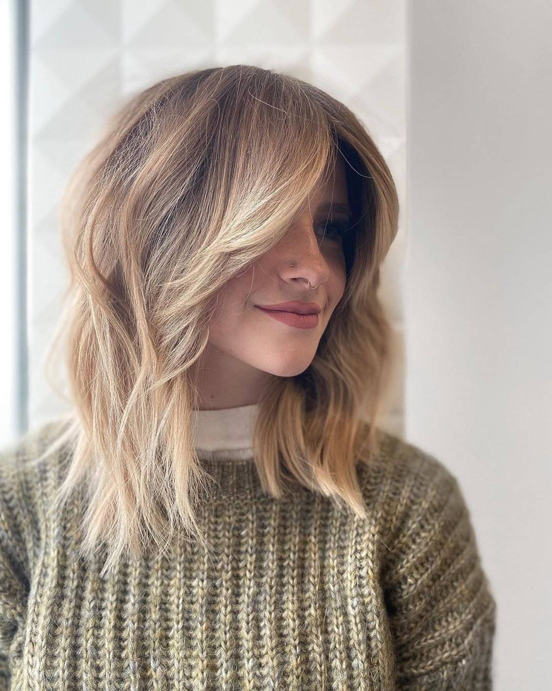 Цвет – ключ к идеальной стрижке в каждом стиле. Балаяж прекрасно сочетается с этой лохматой стрижкой средней длины.