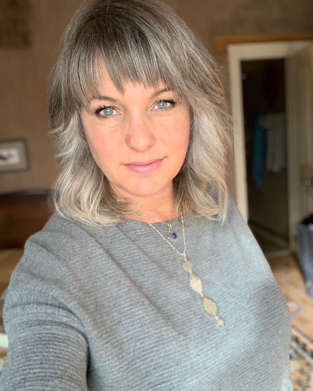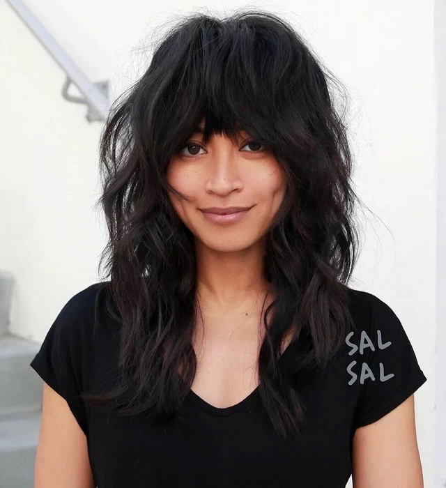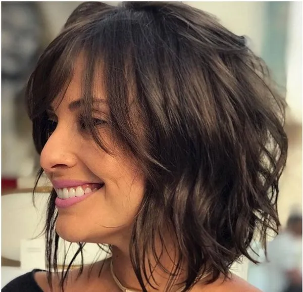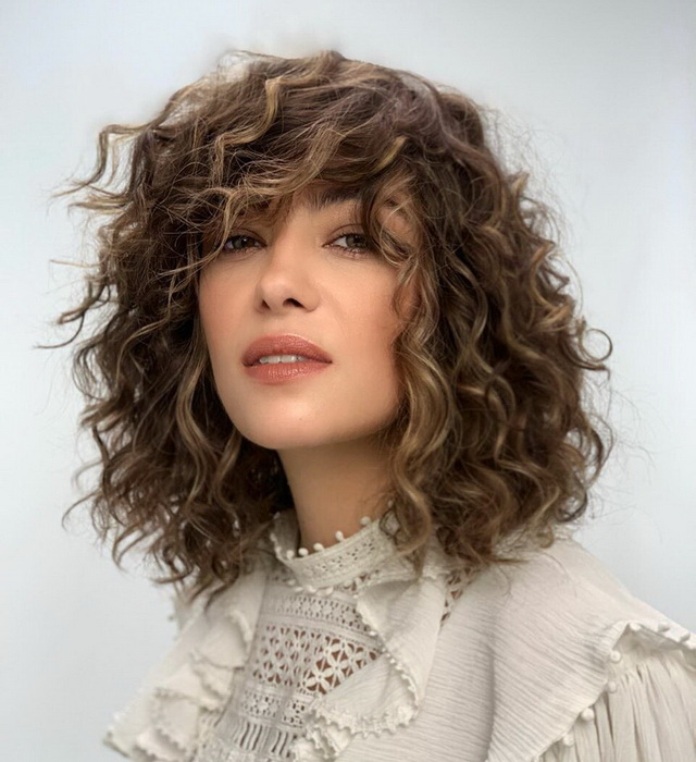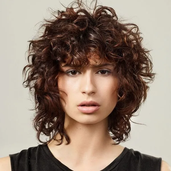 Ищете модный образ с вьющимися волосами? Попробуйте лохматую стрижку средней длины с челкой.