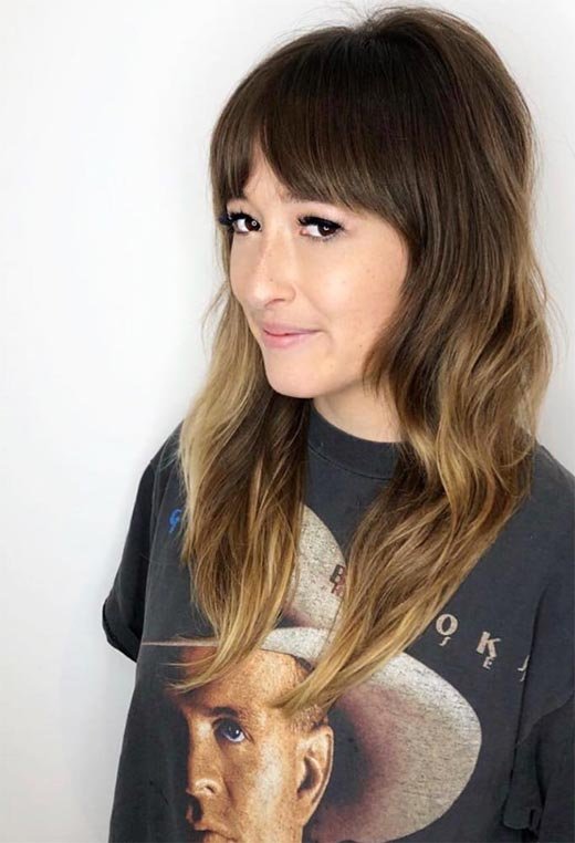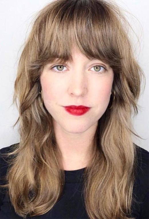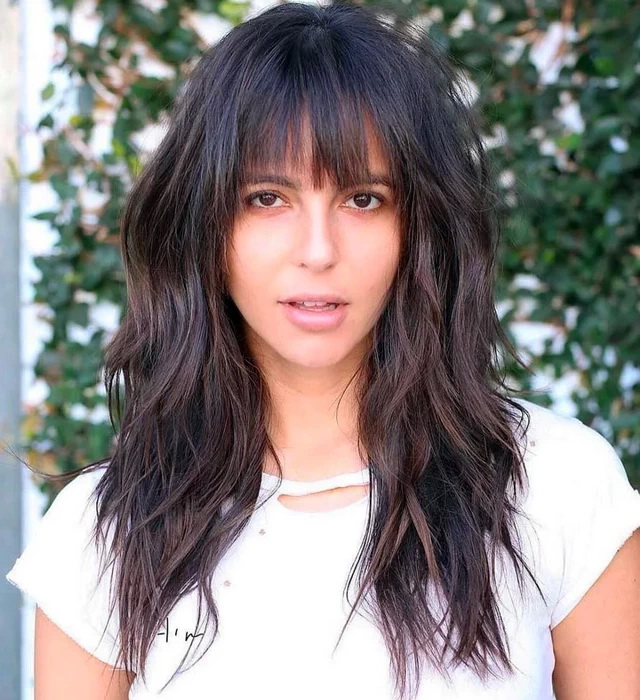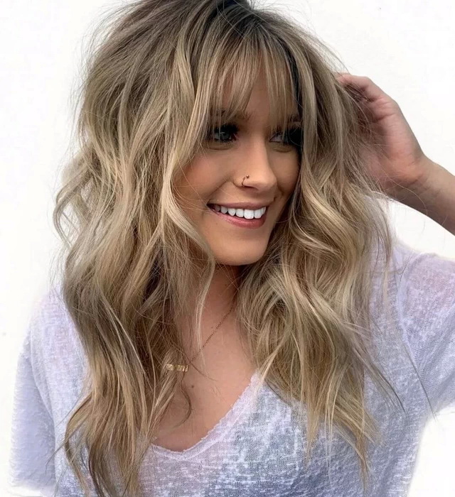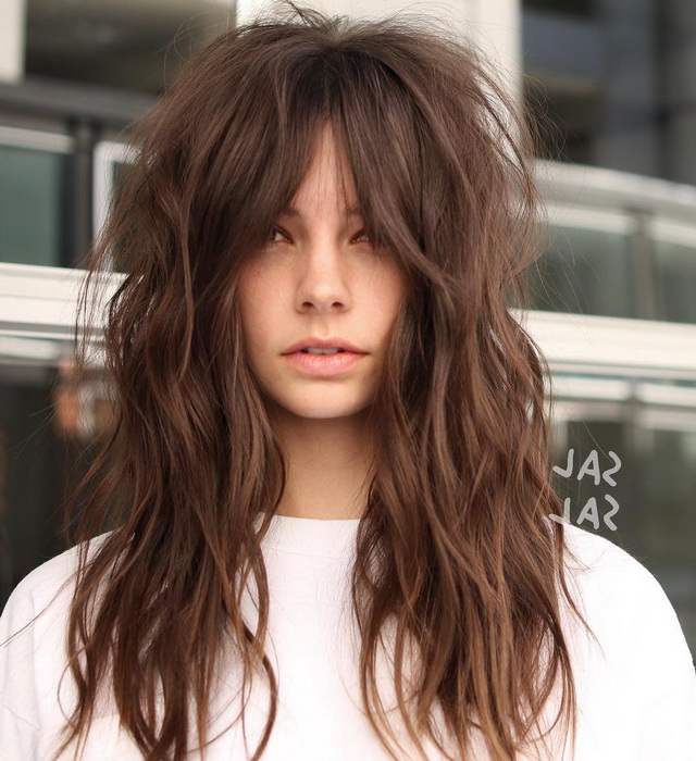 Свежий, длинный, многослойный шэгги может придать вам абсолютно невероятный внешний вид. Длинная лохматая челка сочетается с большими волнами для создания прически, которая выглядит непринужденно.