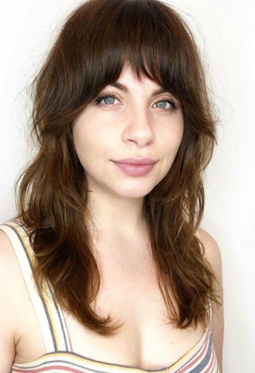 Подходящая как для коротких, так и для более длинных волос, стрижка шегги – один из вариантов прически, который очень хорошо сочетается с челкой.