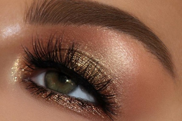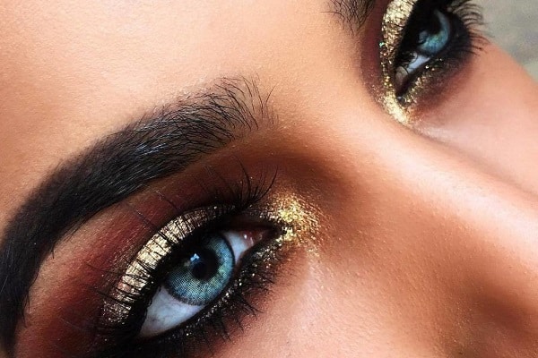 Золотистые тени универсальны, поэтому их могут использовать обладательницы любого оттенка глаз. Главное – подобрать к ним ещё один или несколько цветов. Эффектно выглядит смоки айс с золотистыми тенями, но можно наносить их и с зелёными, бронзовыми, коричневыми оттенками.