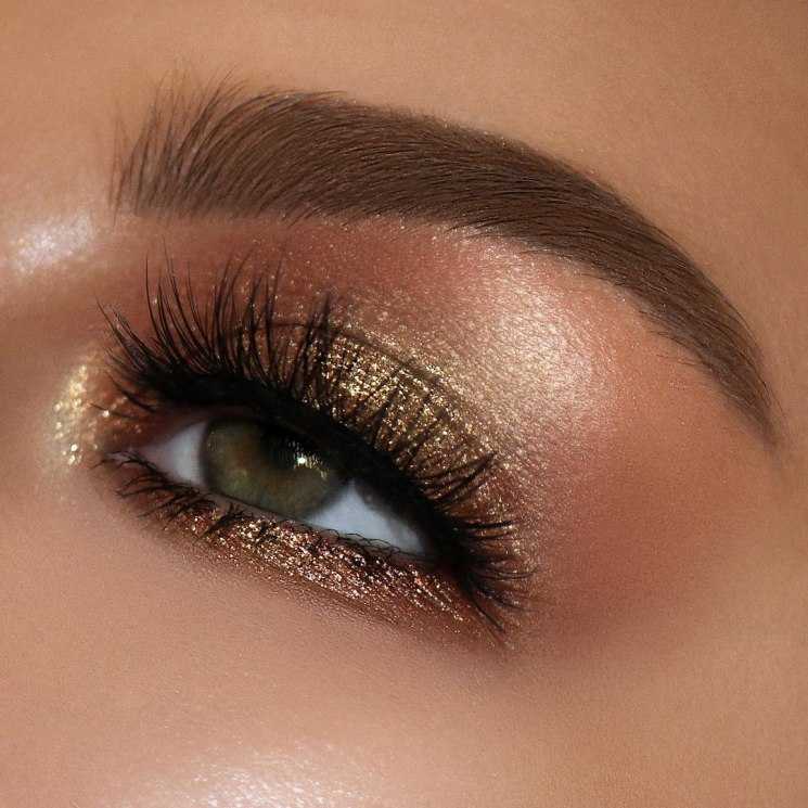 Тени с вкраплениями персика, горчичного или цвета золота также подходят зеленоглазым девушкам и подчёркивают исходный цвет глаз.