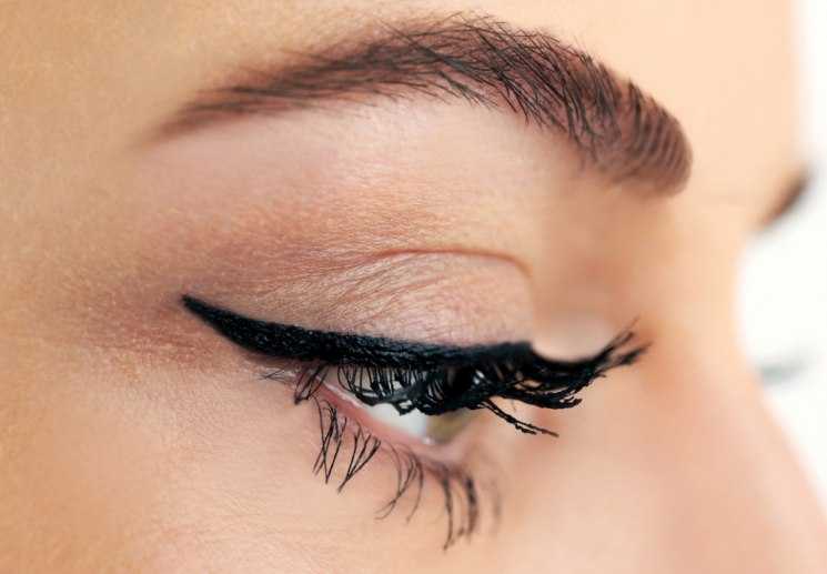 Вдоль ресничного контура нанесите темную подводку. Меняя форму стрелки, вы можете легко скорректировать форму глаза: вытянуть внешний уголок, создать «кукольный» или «кошачий» взгляд.