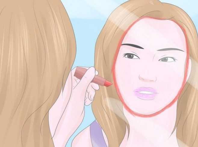 С помощью помады или маркера постарайтесь максимально точно обвести зеркальное отражение головы. Лучше всего начать с подбородка и продвигаться в сторону лба. Постарайтесь сохранить равновесие. Это поможет избежать погрешностей.