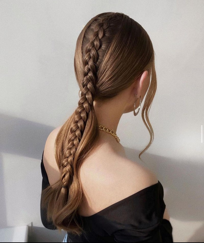 Распущенные прямые либо завитые волосы с косами также актуальны, и стали излюбленными прическами с плетением для многих барышень в сезоне.