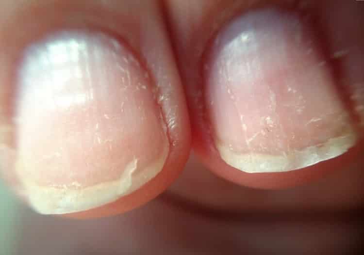 - Появились расслоения на выступающем участке ногтей, околоногтевая кожа имеет множество заусениц и шероховатости.