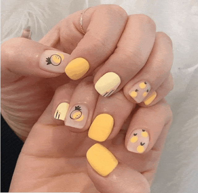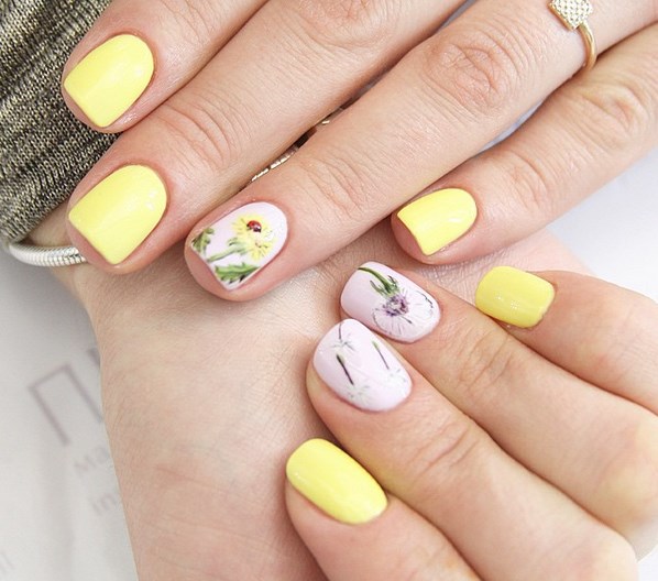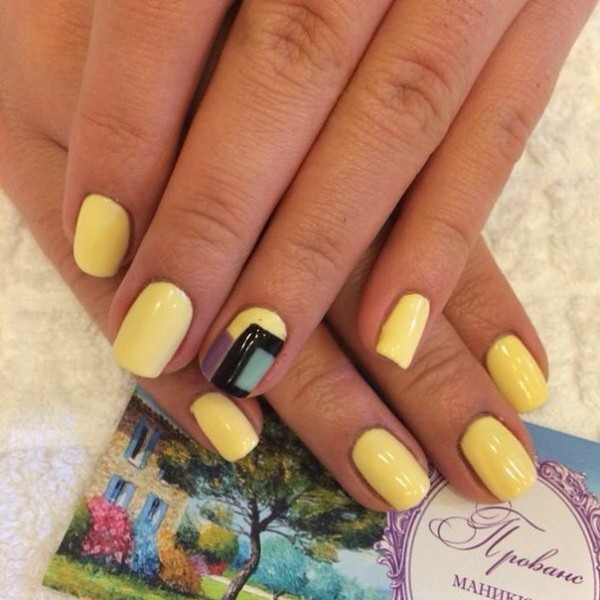 Сочный и солнечный оттенок способен не только украсить ноготки, но сделать день веселее. Психологами доказано, то желтый цвет способен бороться с плохим и депрессивным настроением. Поэтому особенно много его должно быть в пасмурные и темные дни, коих много осенью и зимой. Но и в летнее время яркий маникюр уместен как никогда, особенно в отпуске на море. Позвольте себе быть яркой, украсьте ноготки стразами и броскими рисунками. Не бойтесь выделиться из толпы. Для желтого цвета украшения пойдут только на пользу. Кстати, очень хорошо будут украшения в виде фруктовых долек. Они придадут еще большей свежести ногтям и образу в целом.