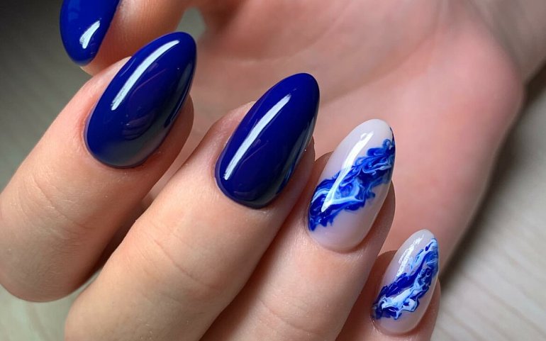 Синий дизайн 2023 на длинные и короткие ногти – модные тенденции: гель-лак, новинки дизайна, фото [Мода moda]
