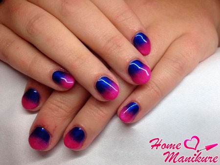Градиентный shellac маникюр можно создавать различными способами, с помощью пигментов или разноцветных шеллаков. Как сделать маникюр с переходом цвета?