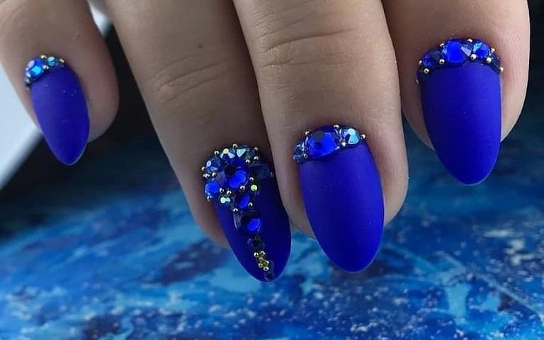 Синий маникюр со стразами