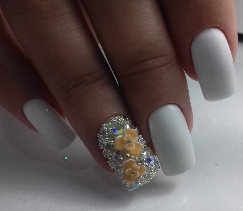 Любые стразы на ногтях с гель-лаком будут долго радовать вас красотой, если пользоваться элементарными мерами предосторожности: убираться и готовить только в перчатках и стараться не задевать предметы руками.