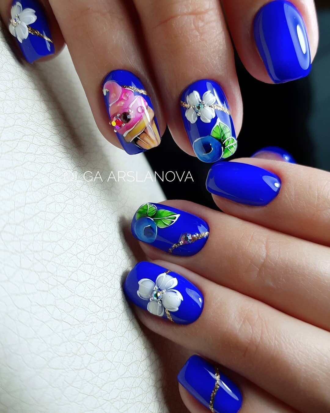 Ассортимент яркого декора представлен камнями самых необычных форм, расцветок и размеров. Благодаря этому из мелких страз создают оригинальные узоры, напоминающие ночное небо, абстрактный, геометрический или растительный орнамент. Крупным камнем можно украсить одну ногтевую пластину – такой дизайн выглядит одновременно элегантно и ярко, он подойдет даже к сдержанному деловому образу.
