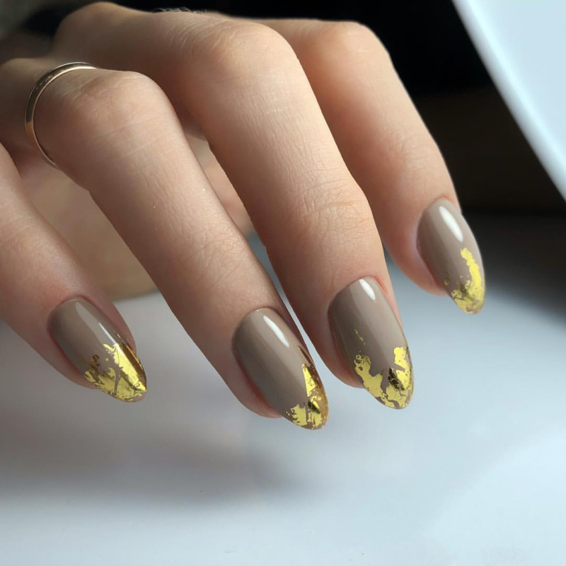 - декор фольгой – используйте оттиск маникюрной фольгой по краю ногтя