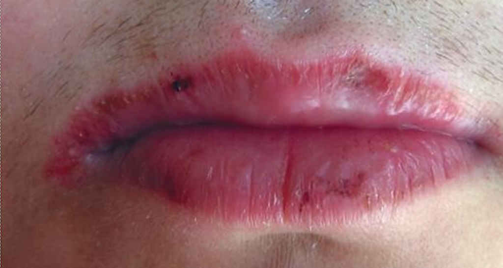 При дерматологических заболеваниях сухость губ может сопровождаться такими специфическими признаками: