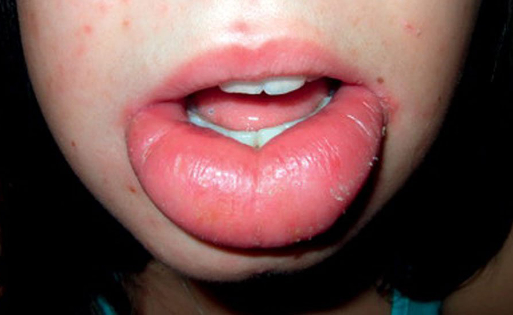 Это поражение слизистой, для которого характерно сильное распухание губ. Зачастую больше всего «страдает» нижняя часть кожно-мышечной складки. Такая припухлость в один из периодов становится меньше, но позже увеличивается вновь. К тому же развитие патологического процесса сопровождается образованием в толще мягких тканей мельчайших гранулем – именно из-за этого и утолщаются ткани. Этиология развития данного явления так и не установлена. Есть предположения, что в основе проблемы лежат нарушения в функционировании сосудов и нервных волокон, а также инфекционное заражение. Однако это лишь гипотезы, которые пока не имеют под собой доказанных фактов.