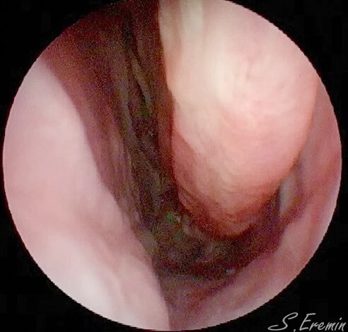 - Фибриновые сгустки и спайки в носу, которые перекрывают просвет.
