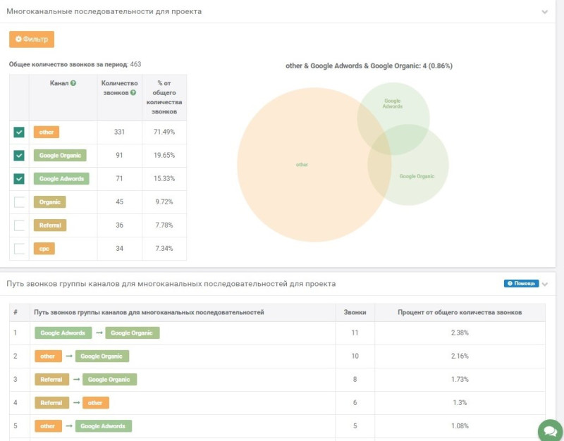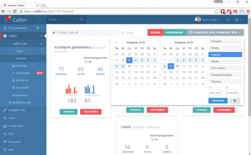 В завершение поговорим о Callibri – наборе сервисов для маркетинга. Суть данного инструмента заключается в том, что в одном журнале отображается полный набор информации: звонки, онлайн-чаты, социальные сети и все остальные подключенные каналы. Callibri легко подключается к разным рекламным и аналитическим системам, ведет слежение за звонками, генерирует отчеты и даже отправляет сообщения, если какой-то звонок был пропущен.