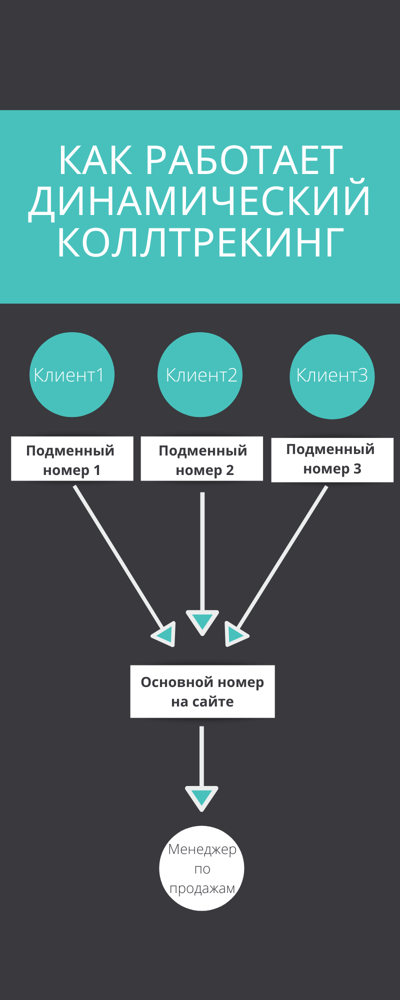 Вариантов настройки и подключения, как и сервисов для работы с колл-трекингом, великое множество. В общем схему работы можно представить так: