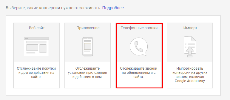 Нельзя обойти стороной и коллтрекинг от Google Ads. Это бесплатный инструмент – он подключается к основному рекламному аккаунту через раздел «Отслеживание» – «Конверсии». Далее понадобится выбрать тип отслеживания по телефонным звонкам и следовать появляющимся на экране инструкциям, отмечая маркерами подходящие параметры.