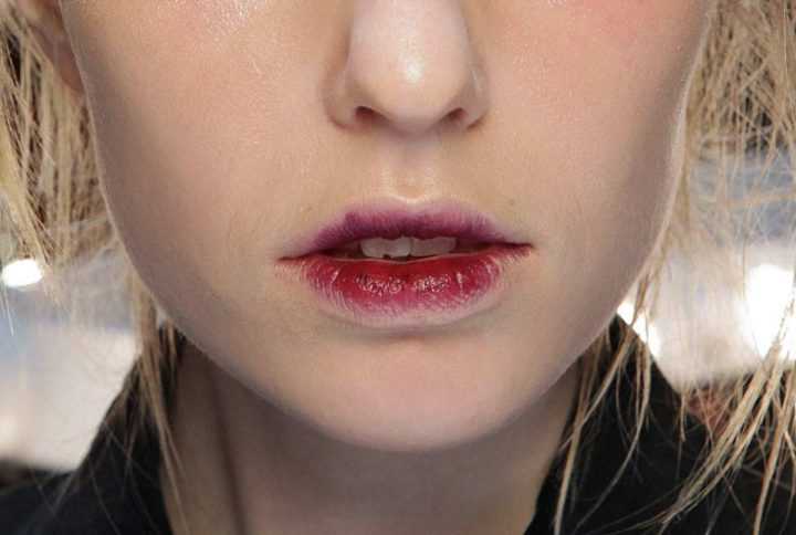 Воспроизвести модный лук можно собственными силами, для этого пигмент стоит непосредственно наносить на внутреннюю часть верхней и нижней губ, а затем растушевывать с помощью пальца или ватной палочки ближе к краям.
