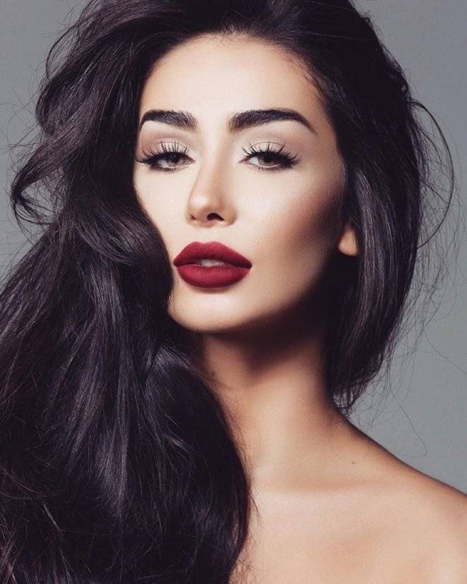 Брюнетки могут смело экспериментировать с красной помадой, делая акцент только на нее или выделяя еще и глаза