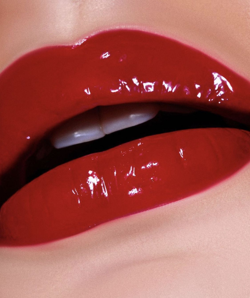 Виниловые губы – яркий акцент, глаза при этом лучше красить умеренно