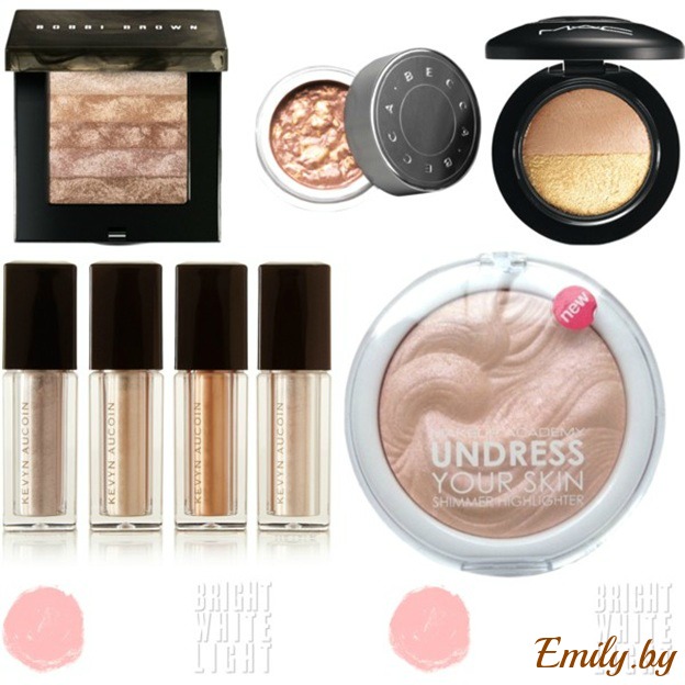 Процесс расстановки на лице световых акцентов получил изящное название — стробинг. Такой макияж осуществляется четырьмя основными косметическими продуктами: хайлайтером, иллюминайзером, шиммером и глитерром. Как правило, все они отличаются между собой степенью концентрации блестящих частиц. Но на деле все косметические марки представляют себе сияторы по-разному, поэтому грань между ними весьма условна.